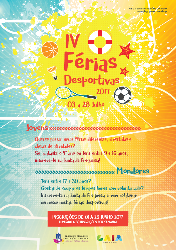 A Escola EB 2/3 de Grijó e a Junta de Freguesia de Grijó e Sermonde vão realizar as IV Férias Desportivas 2017. Este programa tem como objetivo geral a promoção do desenvolvimento integral das crianças e jovens em período de férias escolares.